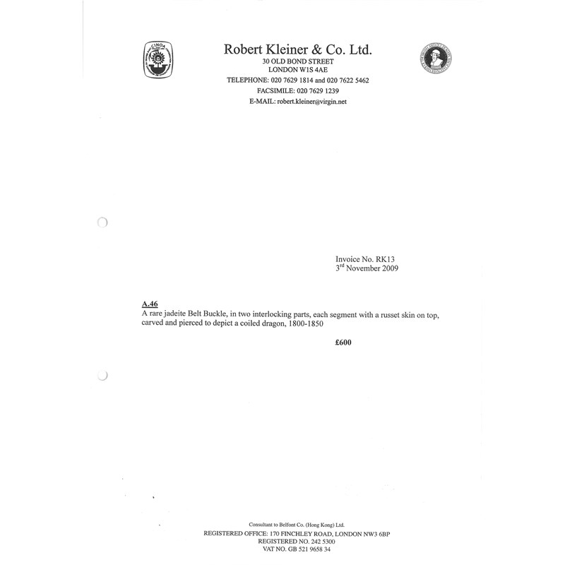 Provenance: from an English private collection, Yorkshire, both purchased from Robert Kleiner, London 10th November 2008 and 3rd November 2009; the smaller buckle previously from the collection of Pat Miller, Hawaii.