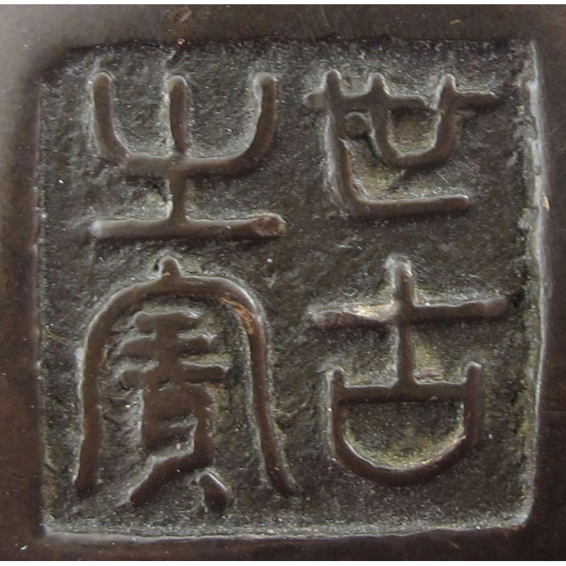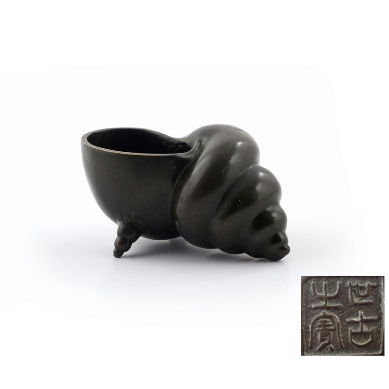 A Japanese bronze incense burner Meiji 1868-1912, formed as a large conch shell with two smaller shells as short feet, the base with a four character mark, 15cm.