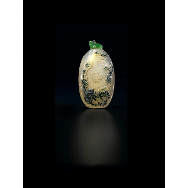 十八/十九世紀 瑪瑙巧雕蝶戀花鼻煙壺