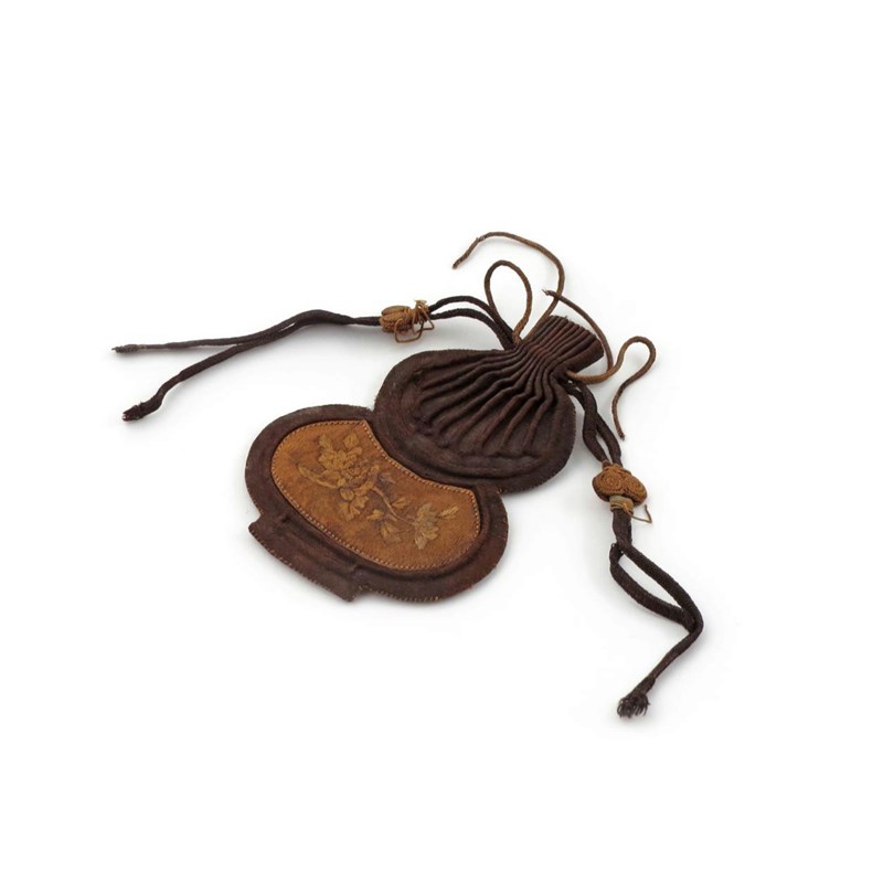 A Chinese brown silk gourd-shaped purse 17th/18th century