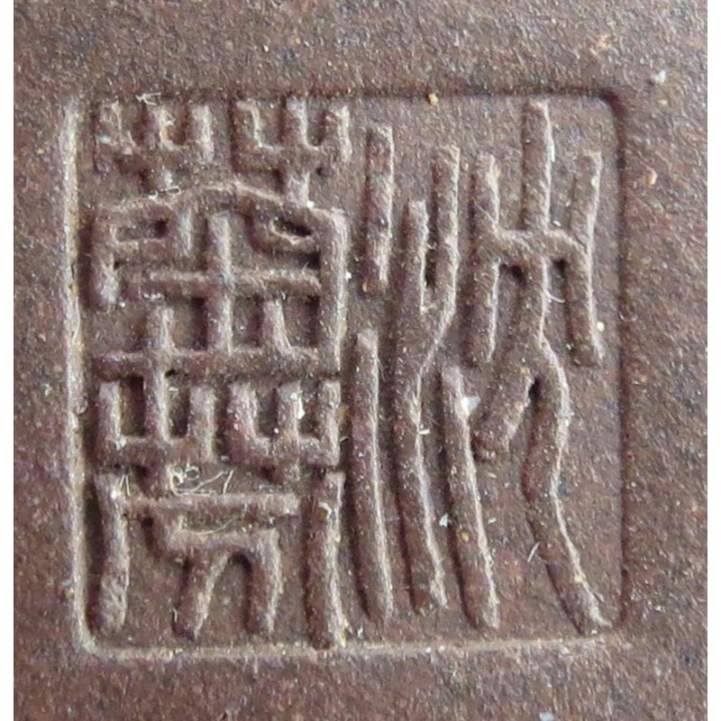 Two Chinese Yixing teapots and covers 20th century, one of plain ovoid form, inscribed to the base with a poem which reads wei zhan xian chen, xiang tian shi xing, the other of compressed circular form, the shoulder and cover lobed, a mark for Shen Ju Fang to the base, another to the cover, 15.4cm. (4)