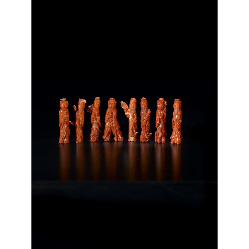 十九世紀/二十世紀 珊瑚雕八仙立像鼻煙壺 一組八件