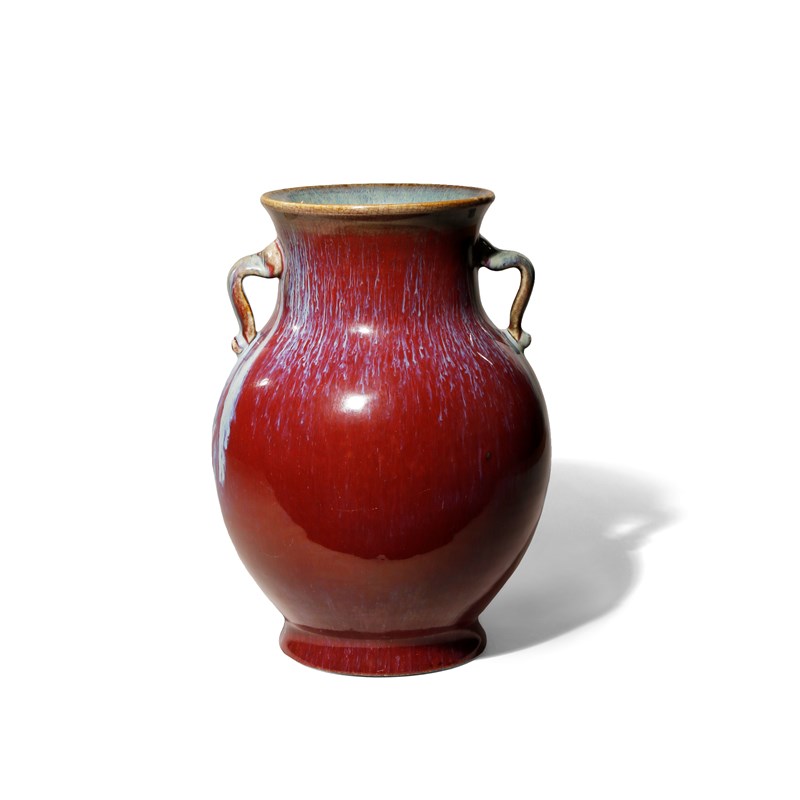 A CHINESE FLAMBE GLAZED VASE 20TH CENTURY The rounded body coated in a rich purple-red glaze with...