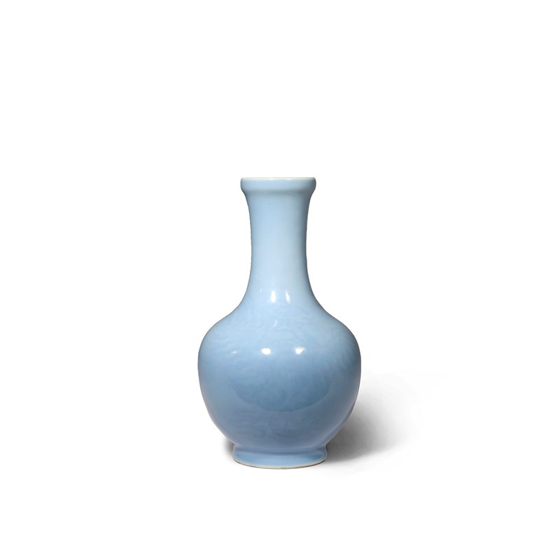 A CHINESE CLAIR-DE-LUNE GLAZED BOTTLE VASE LATE QING DYNASTY Subtly decorated with mythical...