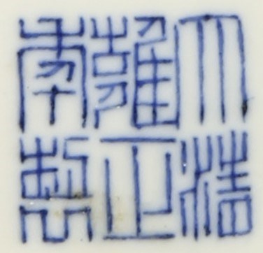 Subtly decorated with mythical creatures under an even pale blue glaze, the base with a six character Yongzheng mark, 18cm.