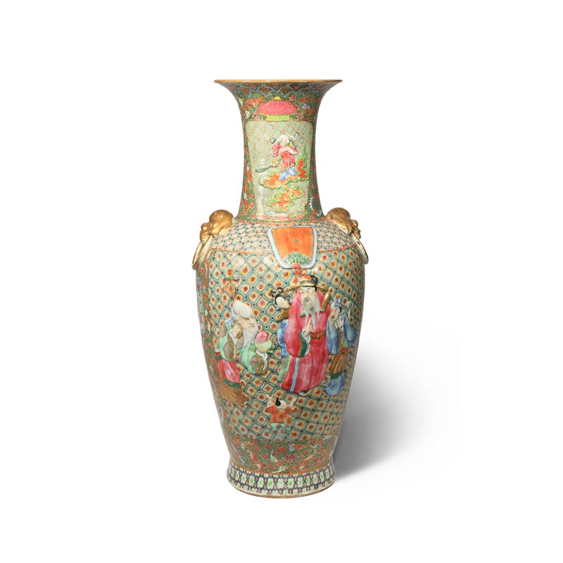 A LARGE CHINESE CANTON FAMILLE ROSE MOULDED 'SANXING' VASE 19TH CENTURY Richly decorated with the...