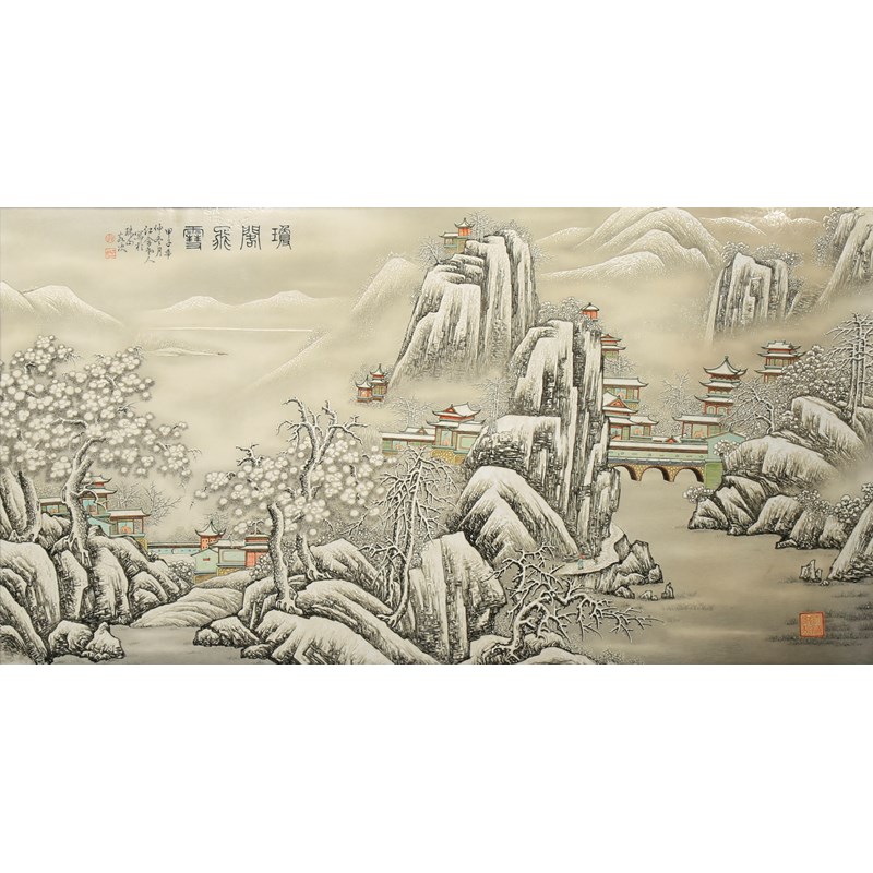 A LARGE CHINESE PORCELAIN 'LANDSCAPE' PANEL MODERN Depicting a snowy mountain scene