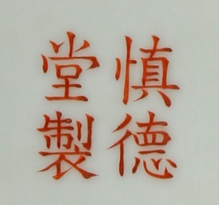 Painted with butterflies and quails amongst flowers and rocks, the neck with two kuilong-shaped handles, a four character Shen De Tang zhi mark to the base, 31cm.
