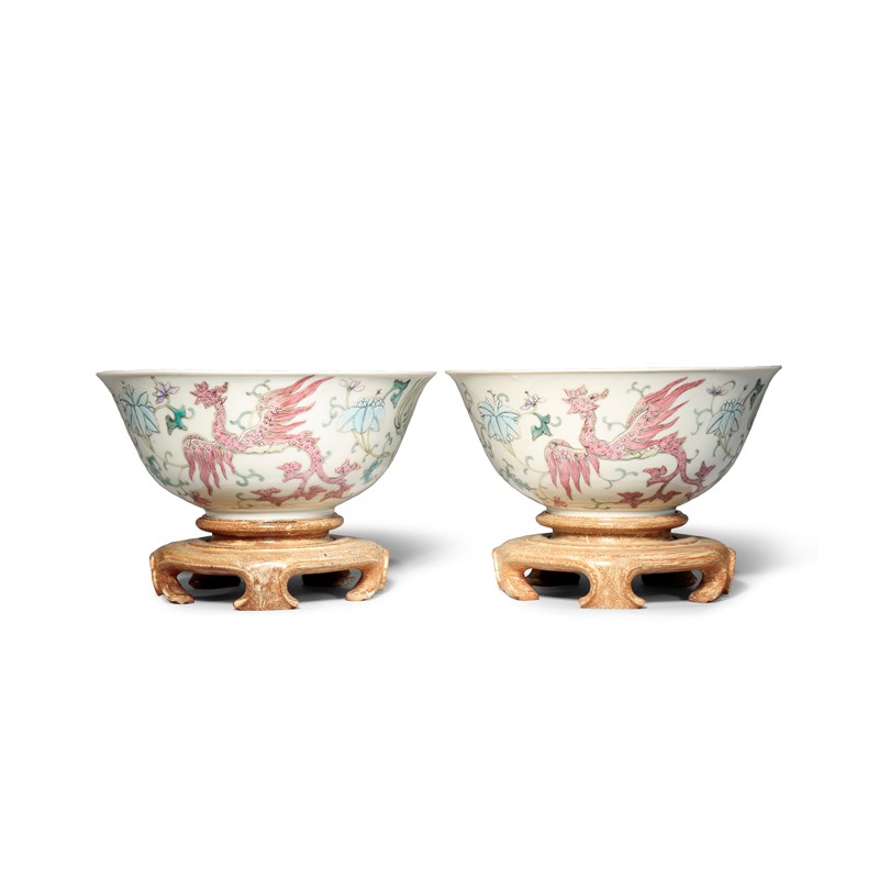 A PAIR OF CHINESE FAMILLE ROSE 'PHOENIX' BOWLS