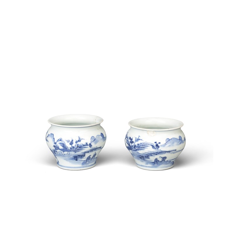 TWO SMALL CHINESE BLUE AND WHITE JARS EARLY 18TH CENTURY Each with an ovoid body and a waisted neck