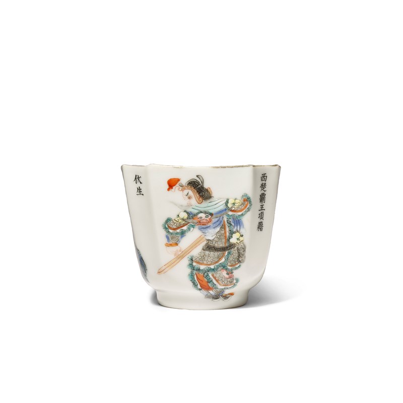 A CHINESE FAMILLE ROSE 'WU SHUANG PU' OCTAGONAL CUP REPUBLIC PERIOD Painted in coloured enamels...