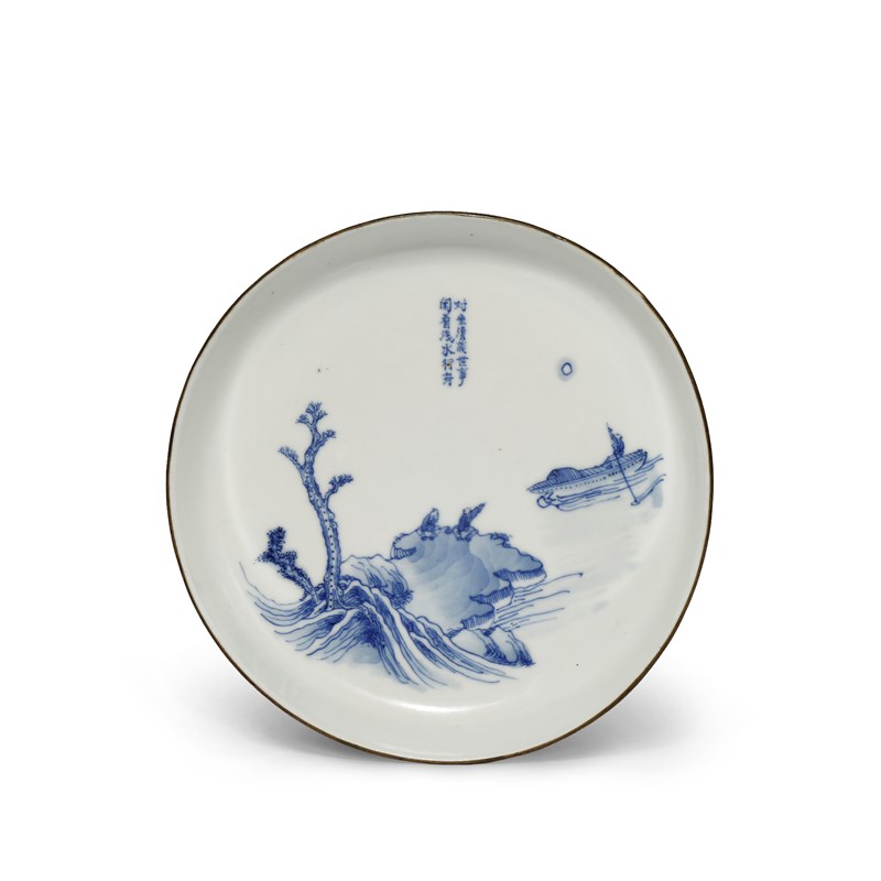 A CHINESE BLUE AND WHITE SAUCER DISH