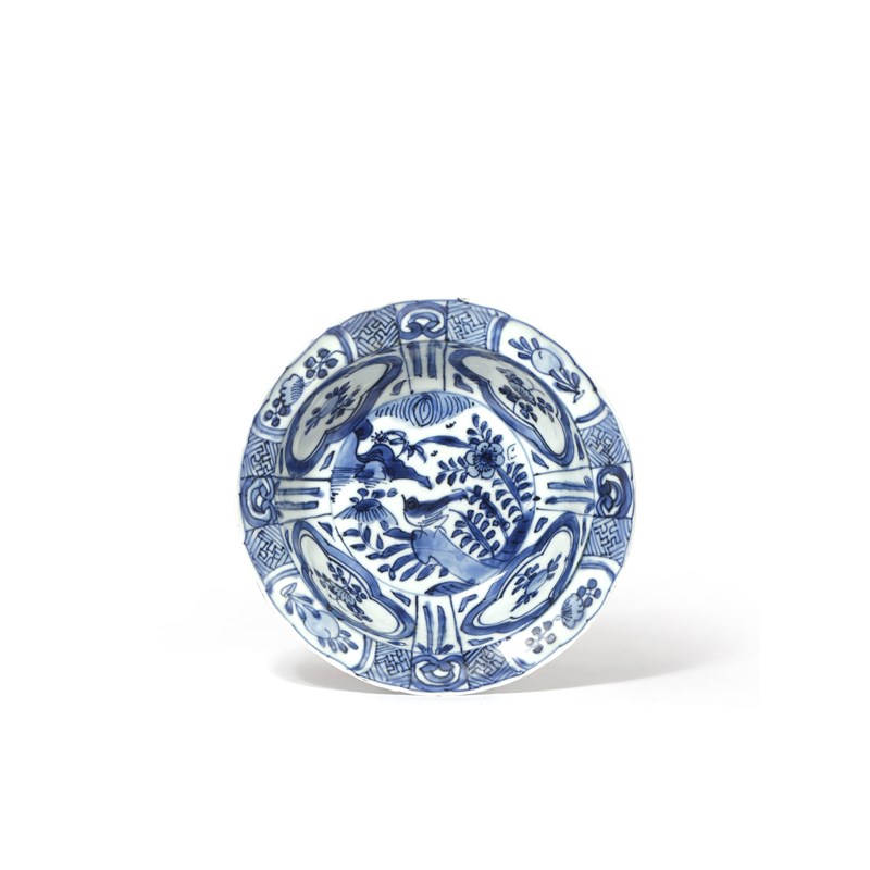 A CHINESE BLUE AND WHITE KRAAK PORCELAIN 'KLAPMUTS' BOWL WANLI 1573-1620 Painted to the centre...