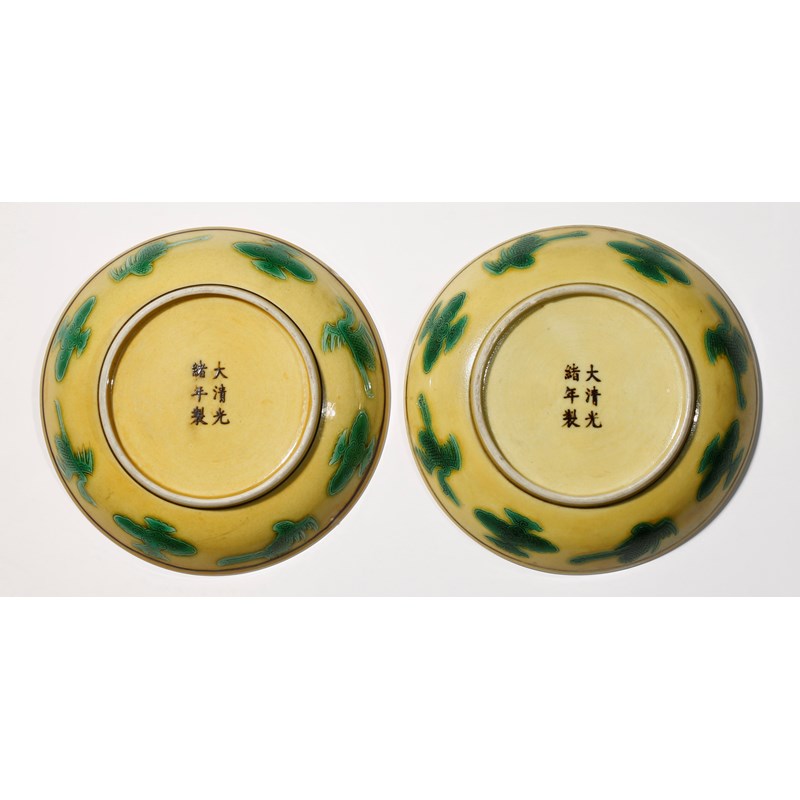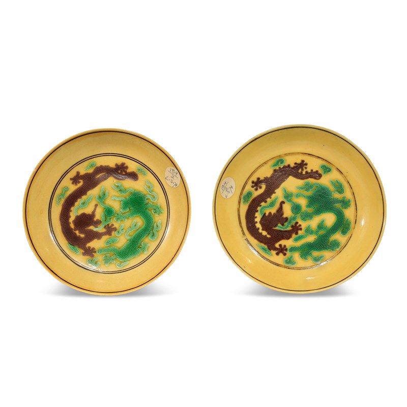 A PAIR OF CHINESE YELLOW-GROUND 'DRAGON' DISHES