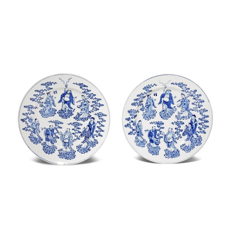 A PAIR OF CHINESE BLUE AND WHITE 'BAXIAN' PLATES