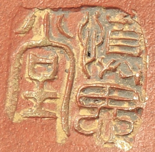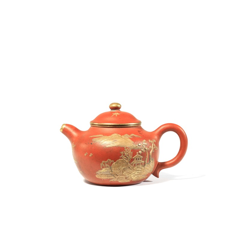 AN UNUSUAL CHINESE GILT-LACQUER DECORATED SMALL YIXING TEAPOT AND COVER 18TH CENTURY Decorated in...
