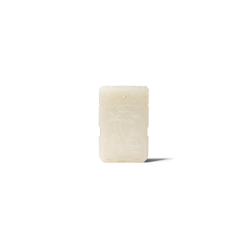 A CHINESE PALE CELADON JADE 'ZI GANG' PLAQUE QING DYNASTY OR LATER Of rectangular form