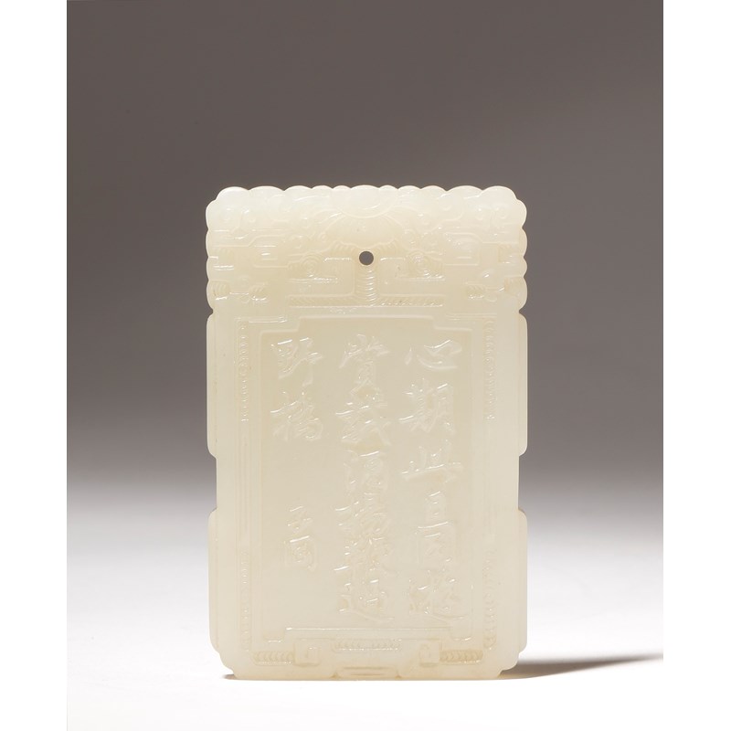 A CHINESE PALE CELADON JADE 'ZI GANG' PLAQUE