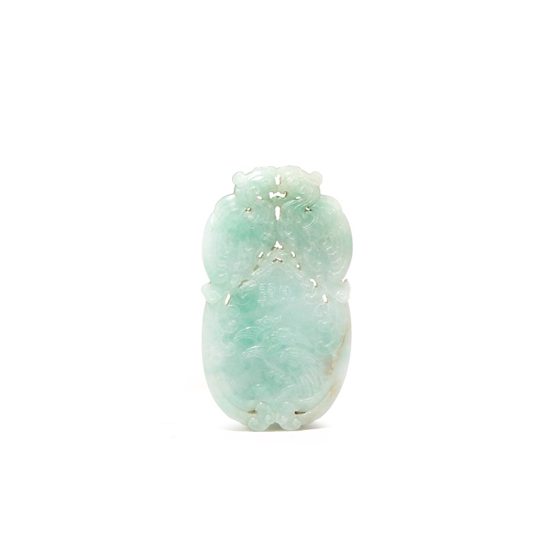 A CHINESE APPLE GREEN JADEITE 'PHOENIX' PLAQUE QING DYNASTY OR LATER Carved in low relief with...