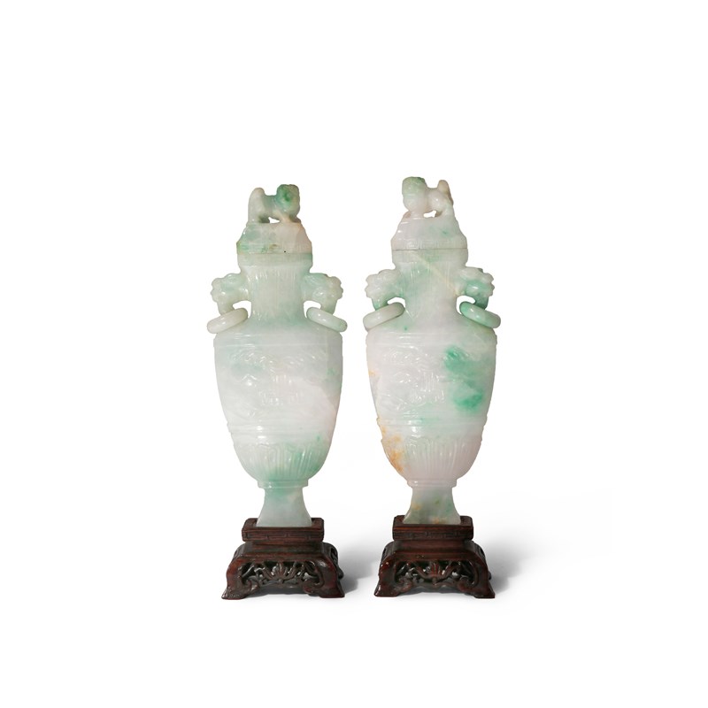 A PAIR OF CHINESE JADEITE VASES AND COVERS