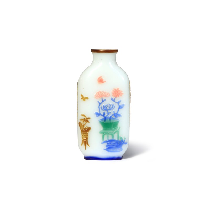 A CHINESE FIVE-COLOUR OVERLAY GLASS SNUFF BOTTLE 19TH CENTURY Variously decorated with flowers