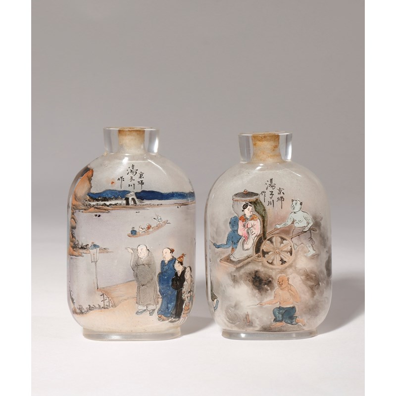 TWO CHINESE INTERIOR-PAINTED GLASS SNUFF BOTTLES SIGNED TANG ZICHUAN 19TH/20TH CENTURY One...