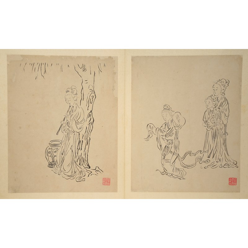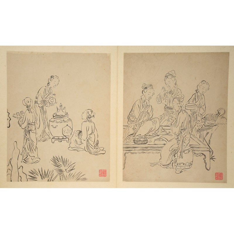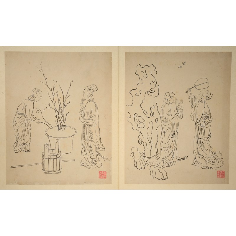 費丹旭(傳) 白描人物冊頁 水墨紙本 十四開冊