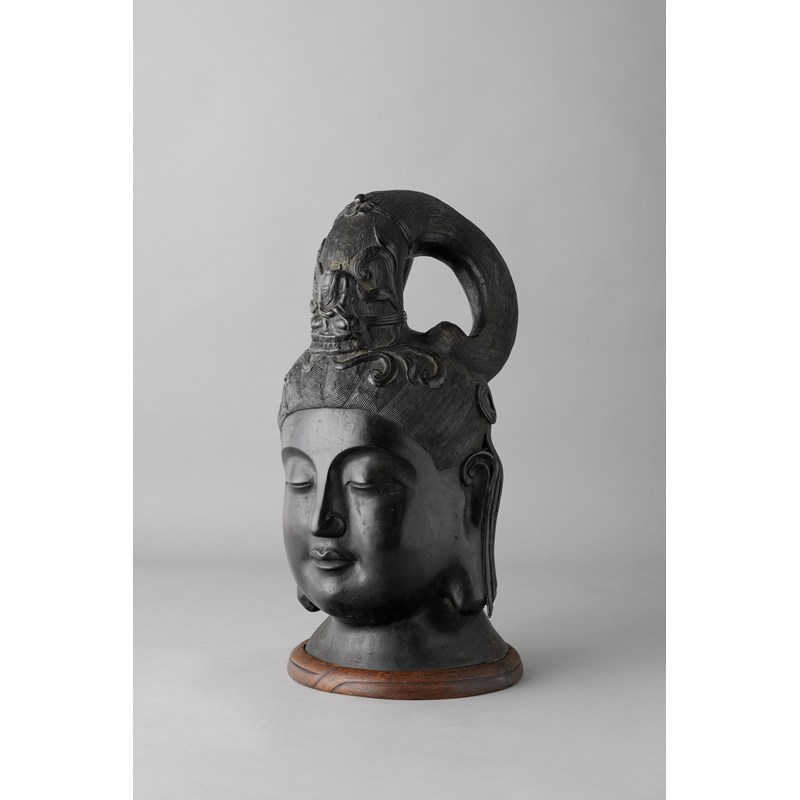 AN UNUSUAL CHINESE BRONZE HEAD OF GUANYIN