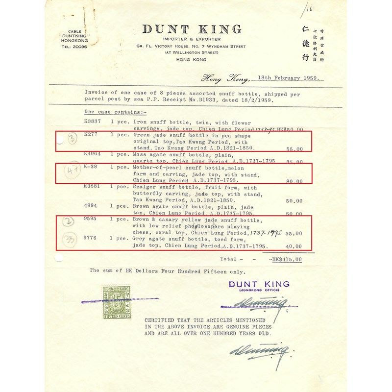 From an English private collection, all with a copy of an invoice for Dunt King dated 18th February 1959.