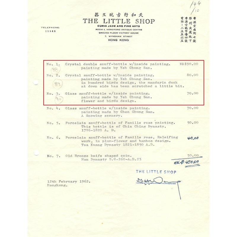 From an English private collection, with a copy of an invoice for The Little Shop, dated 12th February 1962.
