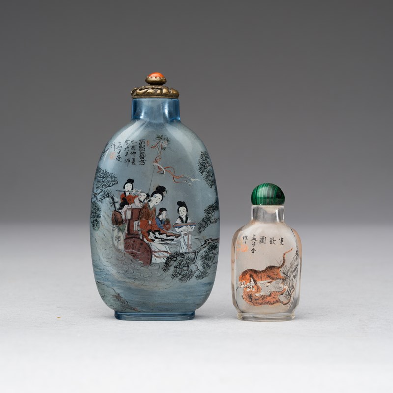λ TWO CHINESE INTERIOR-PAINTED GLASS SNUFF BOTTLES