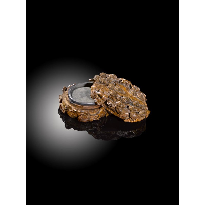 十九/二十世紀 竹雕松枝端硯蓋盒