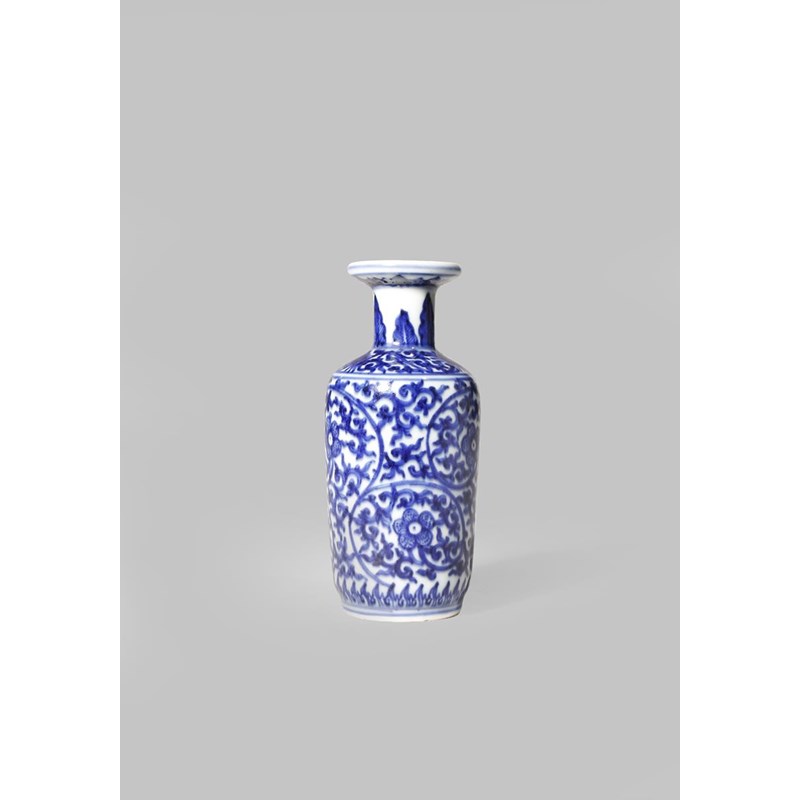 A CHINESE MINIATURE BLUE AND WHITE ROULEAU VASE