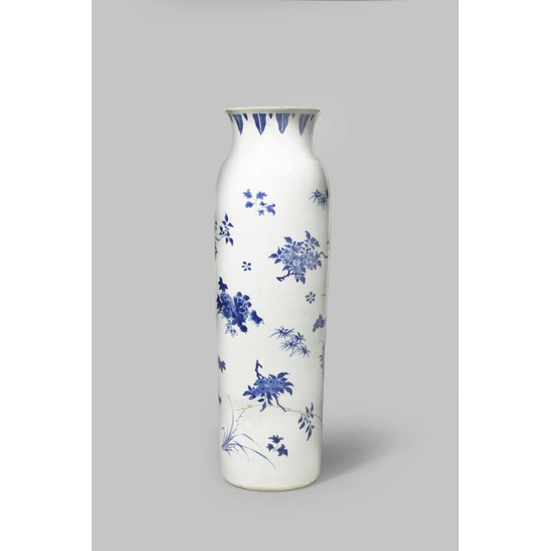 A CHINESE BLUE AND WHITE SLEEVE VASE