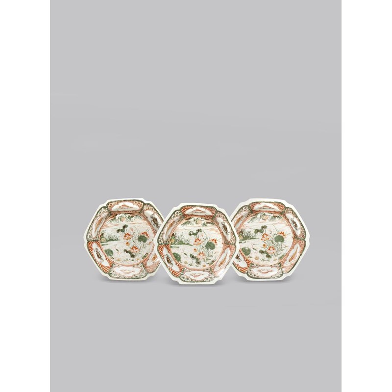 THREE CHINESE KO-SOMETSUKE HEXAGONAL WUCAI DISHES
