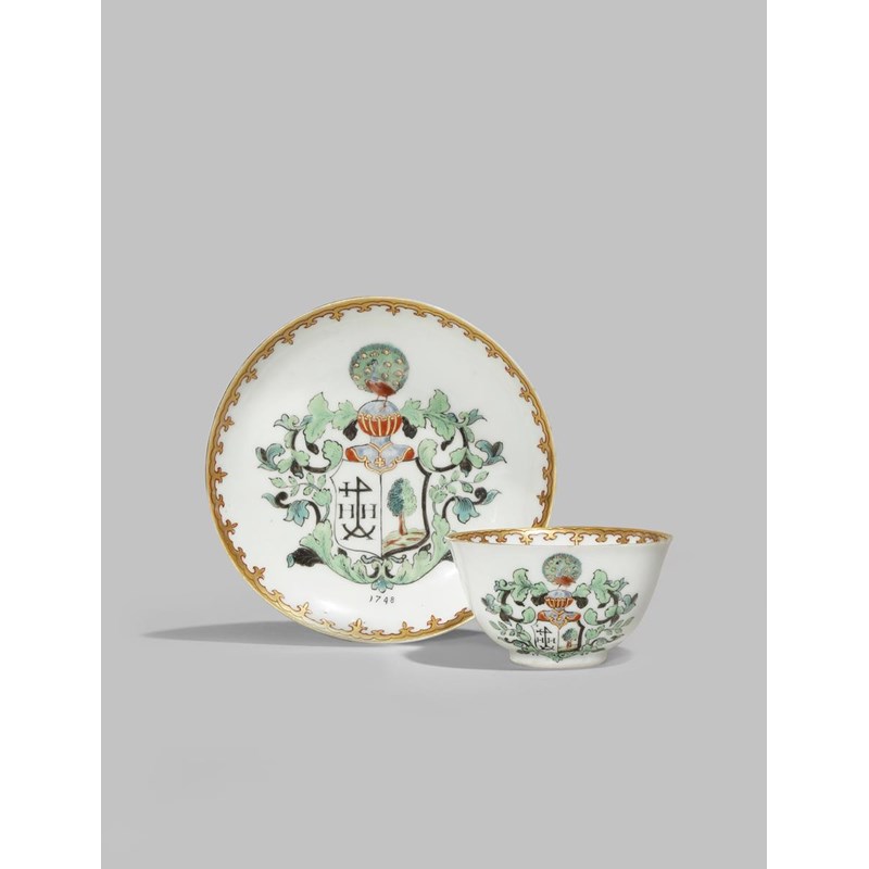 A CHINESE ARMORIAL TEA BOWL AND SAUCER