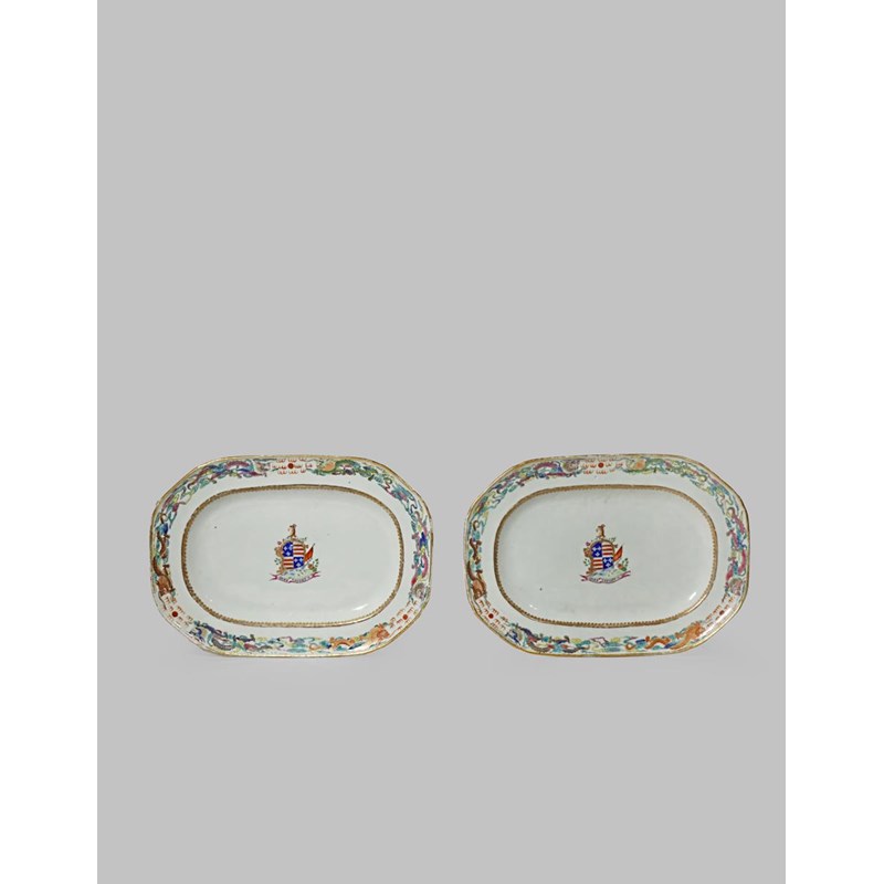 A PAIR OF SMALL CHINESE ARMORIAL OVAL DISHES