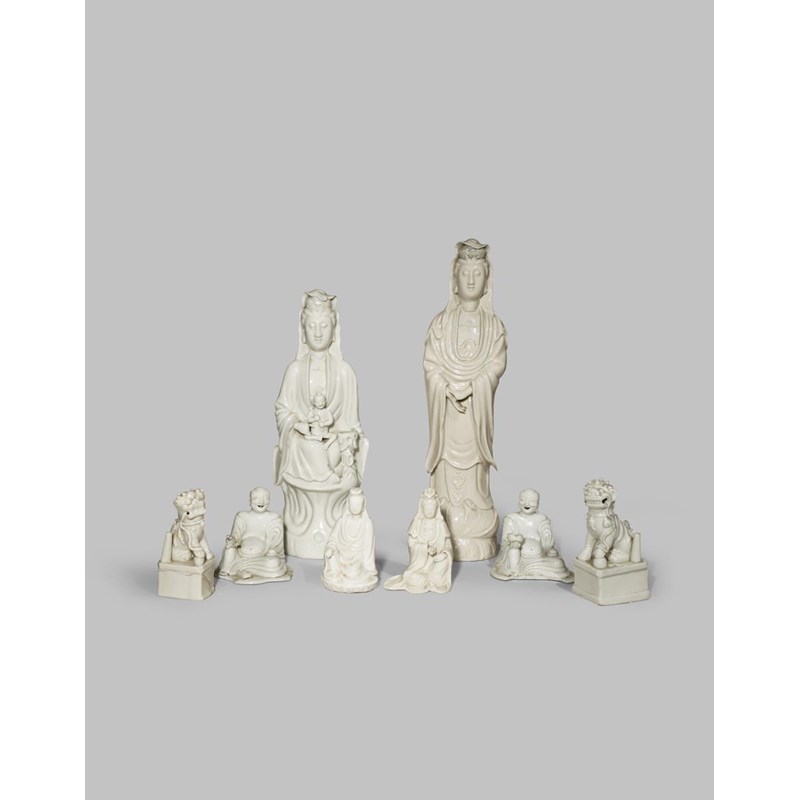 EIGHT CHINESE BLANC DE CHINE FIGURES