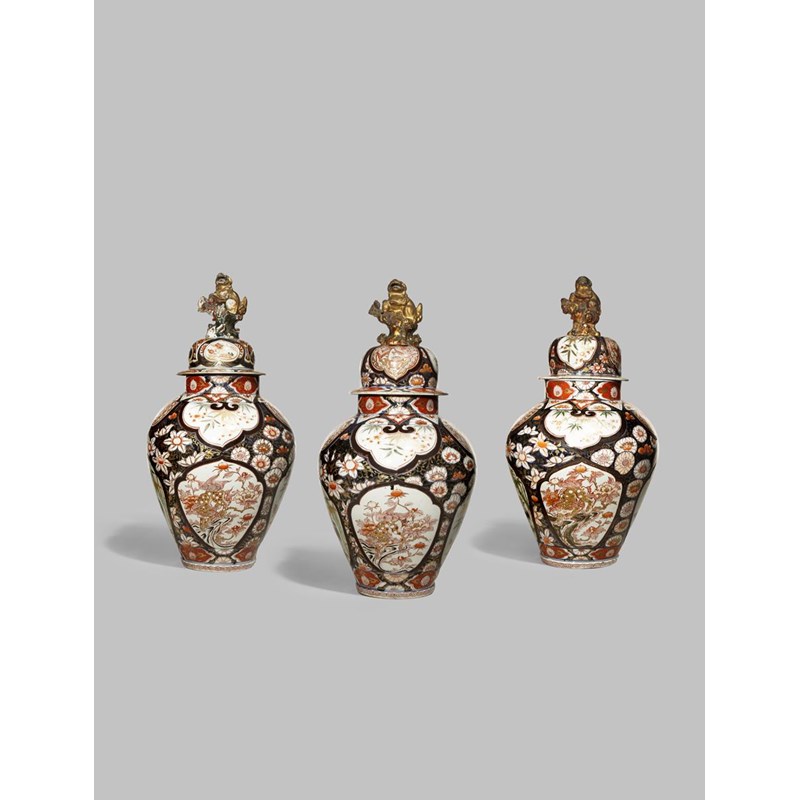 THREE JAPANESE ARITA IMARI VASES AND COVERS FROM A GARNITURE
