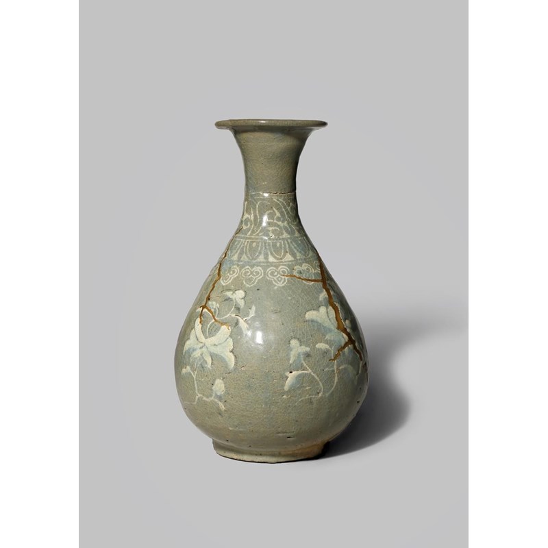 A KOREAN CELADON VASE KORYO DYNASTY The pear-shaped body decorated with four sprays of flowers