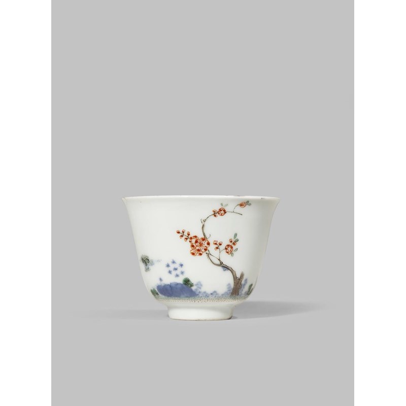 A CHINESE WUCAI MONTH CUP SIX CHARACTER KANGXI MARK AND PROBABLY OF THE PERIOD With a deep body...