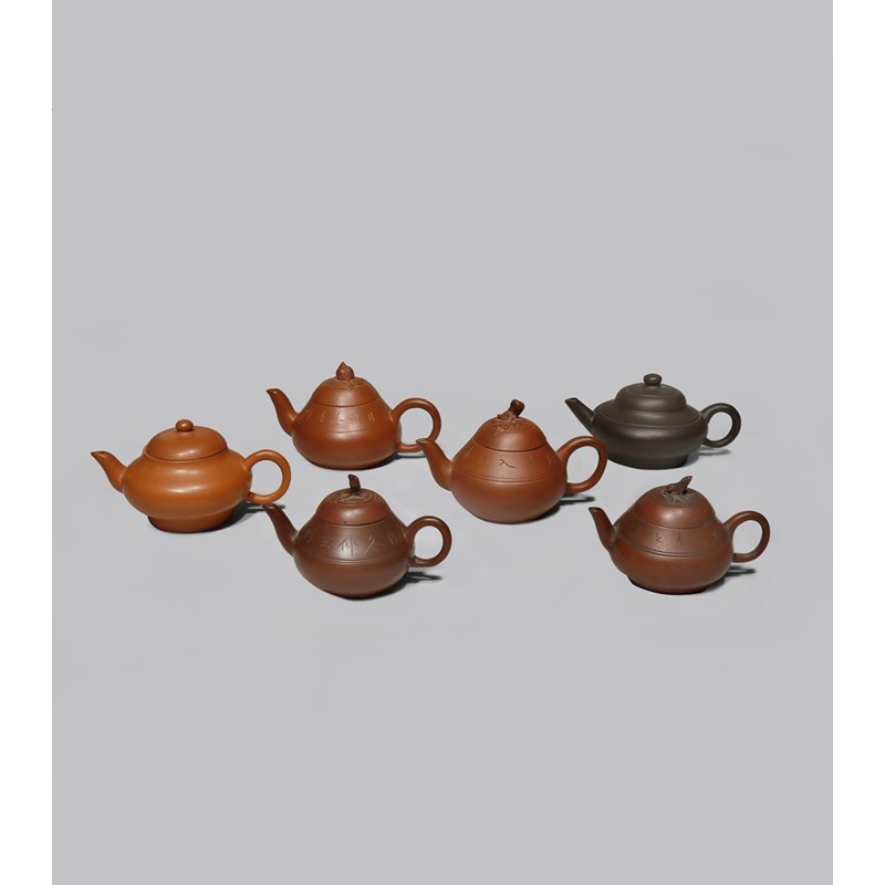SIX SMALL CHINESE YIXING TEAPOTS AND COVERS QING DYNASTY With ovoid bodies