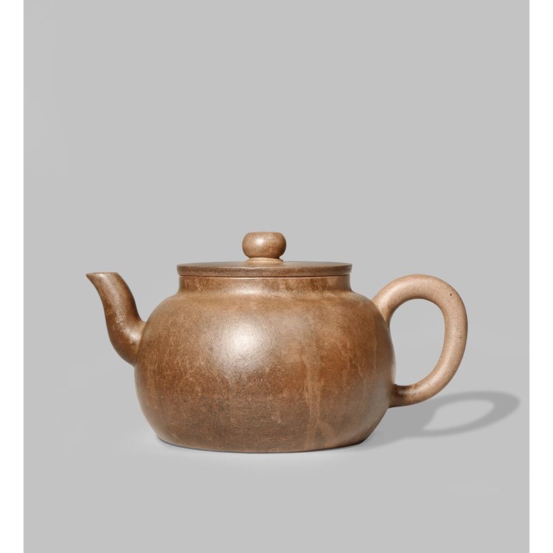 A CHINESE YIXING TEAPOT AND COVER QING DYNASTY With a compressed circular body and simple loop...