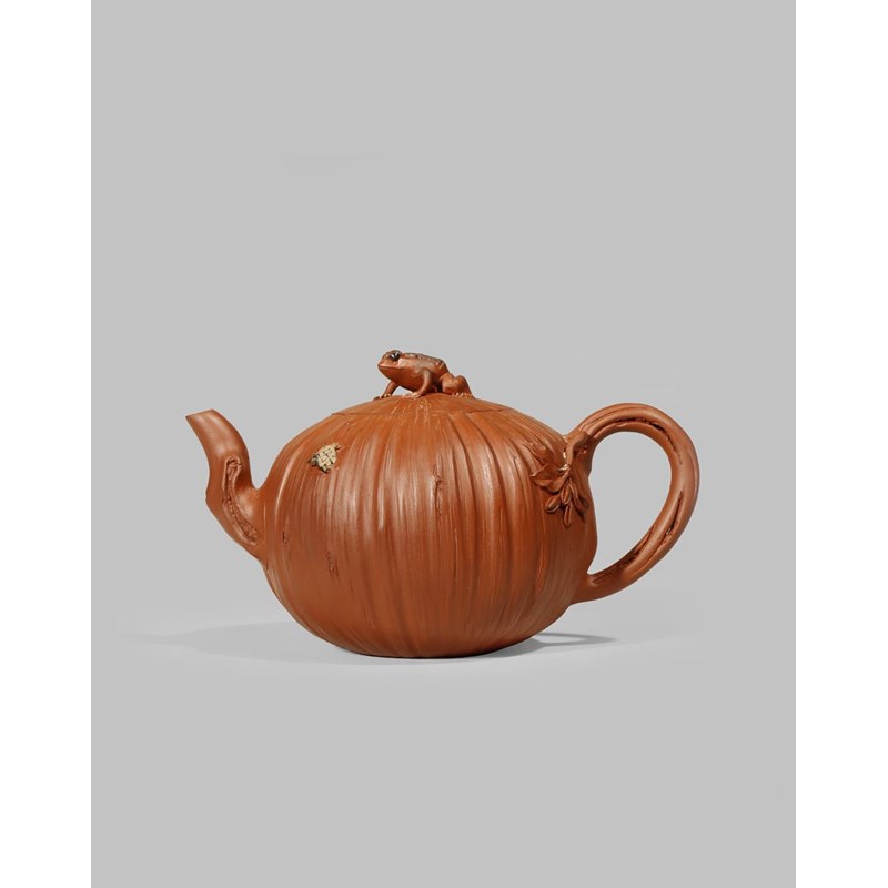 A CHINESE YIXING TEAPOT AND COVER 20TH CENTURY Naturalistically moulded as a large fruit