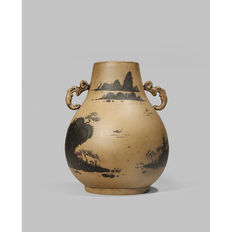 A CHINESE YIXING DUANNI HU-SHAPED VASE QING DYNASTY OR LATER The pear-shaped body with two...