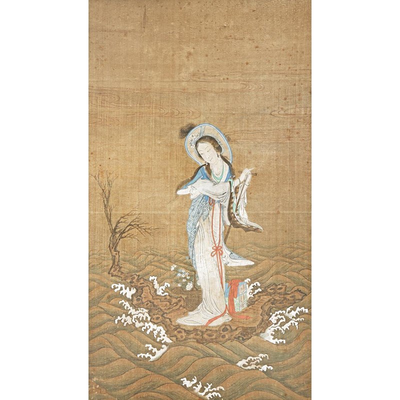 ANONYMOUS (19TH CENTURY) MAGU SAILING ON A LOG RAFT A Chinese painting