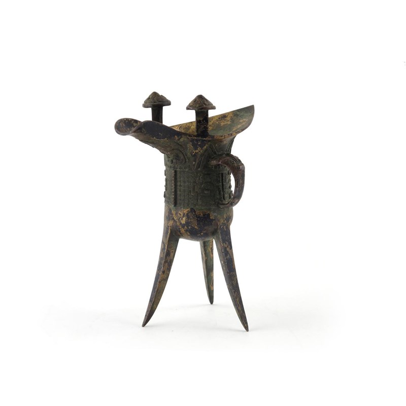 A Chinese bronze jue libation cup
