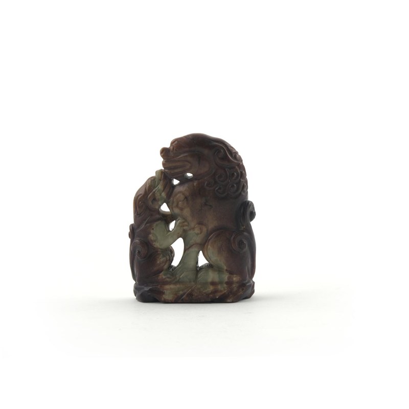 A Chinese yellow jade carving of a lion dog with her puppy