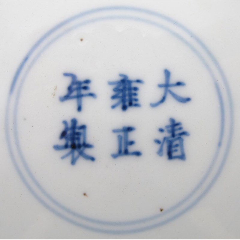 Two Chinese blue and white saucer dishes each with a Yongzheng mark and of the period 1723-35
