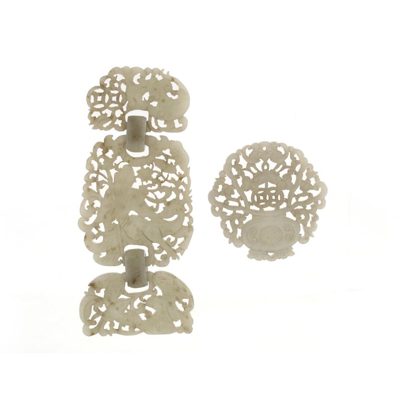 Two Chinese pale celadon jade reticulated plaques 20th century